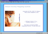 Full sized image: JPG PNG | The opening view of the Global Overlay Mapper. The version numbers and license information are clearly shown. Above is the main toolbar, used to select all of the Global Overlay Mapper's maps and functions. |
