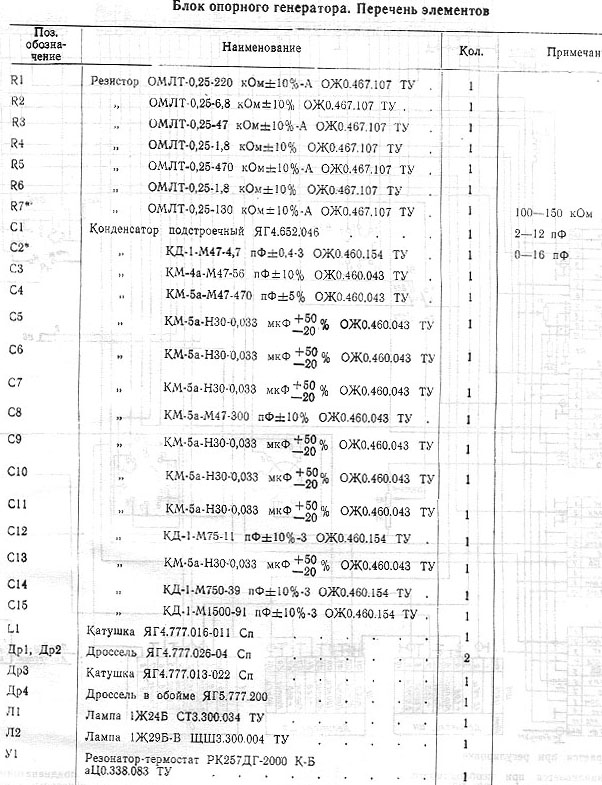 Блок опорного генератора. Перечень элементов