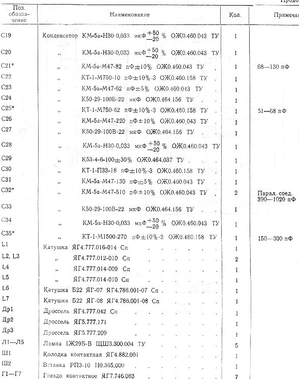 Блок ВЧ. Перечень элементов 7