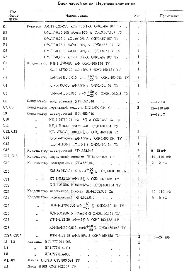 Блок ВЧ. Перечень элементов 4