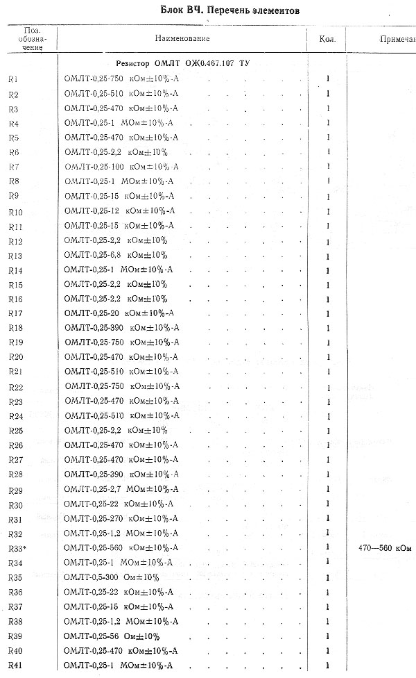 Блок ВЧ. Перечень элементов 1