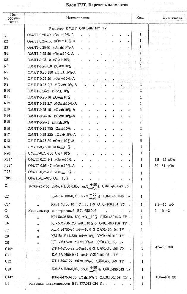 Блок ГЧТ. Перечень элементов 1