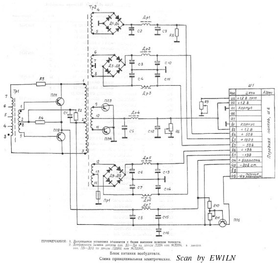 Блок питания возбудитеял (БПВ). Схема принципиальная электрическая