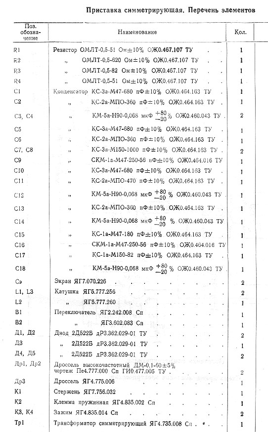 Приставка симметрирующая. Перечень элементов