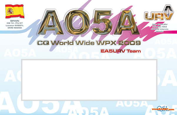 Esta es la qsl de AO5A diseñada para esta ocasion por nuestro amigo EA5ST, que sera confirmada por el bureau a todos los que nos trabajaron en el concurso.