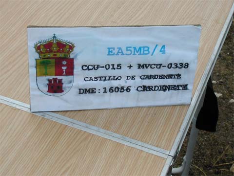 Despues de la agradable comida en compañia de la familia de Jose Maria EA5MB nos pusimos camino de nuestra segunda actividad, calcule mal la distancia pense que estaba mas cerca de Mira pero bueno nos valio para conocer otros lugares que si no hubiera sido por esta nuestra aficion no los conoceria, pusimos en el aire el Castillo y Fortaleza de Cardenete construido por Andres Cabrera que fue el primer Marques de Moya en siglo XVI referenciado como CCU-015 y MVCU-0338 con el DME: 16056 Cardenete empleando el indicativo EA5MB/4, no nos costo mucho la localizacion ya que el acceso esta muy bien para ir con vehiculo, empezamos con tiempo fresco sobre 16 grados centigrados pero como hacia viento la sensacion era de menos, a la media hora de empezar nos cayo el "diluvio universal" teniendo que dar por finalizada la actividad, en el tiempo que estuvimos en el aire realizamos 195 qsos con un porcentaje de 4,4 qsos/minuto que no esta nada mal habida cuenta del pile-up que tuvimos y NO llamamos "por distritos" dando la oportunidad a todos por igual, la propa estuvo fabulosa, a continuacion podeis ver algunas fotos de la actividad, asi como consultar el log.