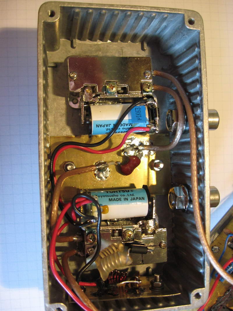 Al utilizar los relés coaxiales con conector N y dos tomas con salida de cable, me veo obligado a realizar un taladro para poder acceder al vivo del conector N y poder alimentar el previo por el cable coaxial. La alimentación del previo la proporciona el amplificador Mirage modificado, lo que asegura que el previo solo recibirá tensión con el lineal apagado.