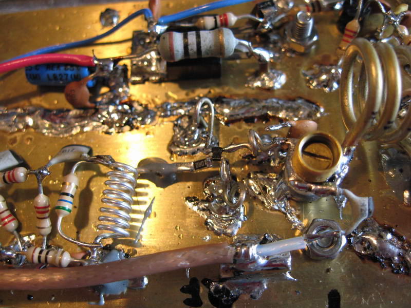 Vista general desde arriba. Los puntos grises son pegamento Nural de mezcla para hacer el montaje aéreo más robusto.