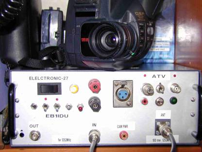 Consta de un transmisor de ATV, que trabaja en la frecuencia de 1250MHz con una tensión de alimentación de 12v CC, tiene la entrada de audio y vídeo; así como una resistencia variable para ajustar la señal a 1 voltio. Le podéis encontrar en ELECTRÓNICA BARCELONA .