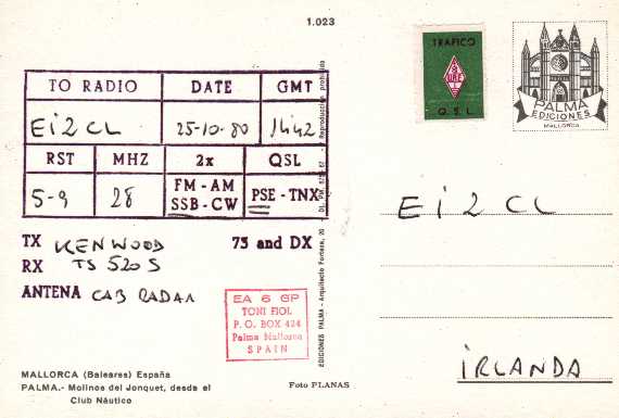 Pair of type #1 on a QSL from EA6CL