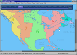 Full sized image: JPG PNG | A map is opened by clicking on the GOM main toolbar - this time its a sub-continental map of Eastern USA. Next, the blue toolbar over the map is used to select the required overlays to view: CQ Zones and Cities. |