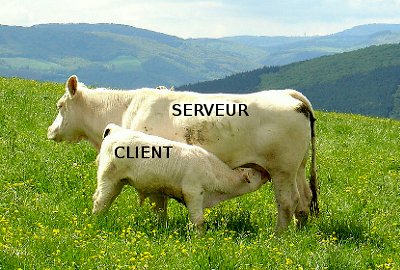 Le mode client-serveur repose sur le modèle du veau et de la vache. Le veau c'est vous et la vache c'est le site web. Vous obtenez de la vache du lait et des cookies. Le lait c'est l'information que vous êtes venu y chercher. Les cookies sont des petits bout de texte que le site envoie dans votre ordinateur, souvent à votre insu, surtout dans le but de se faciliter son activité marchande ou bien dans un but de reconnaissance pour simplifier des transactions ultérieures.