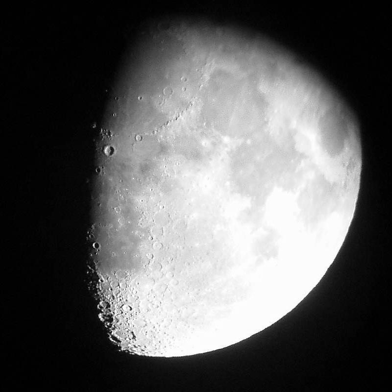 Les appareils photo numériques permettent maintenant a un astronome amateur de réaliser des photos de qualité honorable avec des moyens relativement simples. A titre d'exemple ces deux photos de la lune réalisées en zone urbaine avec un télescope de 200 mm et un appareil numérique Olympus C1. Les défauts perceptibles dans les zones uniformes sont une conséquence de la compression jpeg. Les photos sont de Claude Fabre, F5IYA (SK).