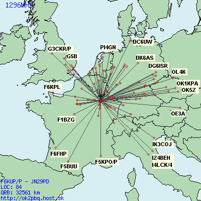 This WE we had great time with radio and conviviality. We had less power on 432MHz this year and a preamp was missing. On the other bands the 3cm was activated this year by Yoann F4DRU with its own station. The propagation conditions were just average and the WX was ok on saturday and fine on sunday. Compared to the following years, we have made much less QSO on 432MHz and little less on 13cm. But on 23cm and on 3cm we have improved our results. So we think that our potentiel is not yet fully explored. - The disapointing 432MHz result is due mainly to lack of propagation and lack of LNA. We have to improve the 432MHz station, and it is crutial because we take a lot of skeds on the upper bands from 432MHz. - On 23cm, we have achieved more QSO because we have had a better way of managing the skeds from 432MHz. Nevertheless, it is sometimes very hard to follow the rushes when many stations asked us for skeds. In general the stations don't want to wait and give up to much earlier even if we warn them that the 23/13cm operator is busy. We have 3 Italian stations on this band this year, it is very nice and we have also many OK stations (great DX operators). We have not contacted any stations on JO41 and JO51 squares despites the relatively standrard propagation on this band. We can improuve the station with a second antenna with lower gain and larger beamwidth in order to reach the short distance contacts. It will reduce also the need for turning the dish on opposite sides. This takes time because the rotor is slow. An automatic call launcher is an other idea in order to improve the rate of random qso. - The 13cm band has given less QSO because of a not so good propagation. We have missed many easy locators such as JO30/40 and even JO20! Lack of activity ?? We think that the potential is here but all the difficult task is to exploit it. - The 3cm was very fine. The F4DRU station has worked great and 20+ qso are in the log. 30 are very possible but we need to cut some trees around ;) In the following year we hope some QSO on 24GHz ! Thanks for all these nice QSO. 73s from the F6KUP team: F1AKK, F4BUC, F4DRU, F4DZI