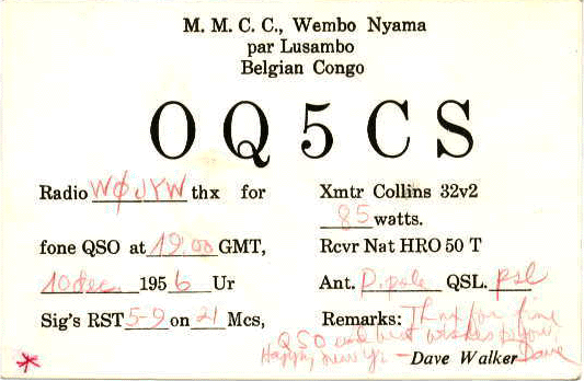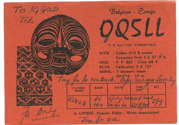 is our oldest CONGO QSL card as at now, courtesy G4UZN. |