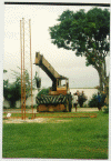 < Logistics on site, and Badagry lagoon right behind the fence. A 4 square went up a new 80 ft tower (see pics at left),