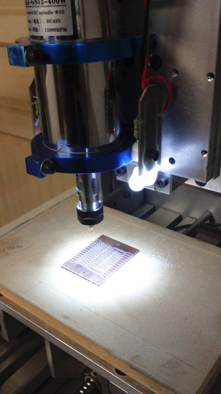La carte terminée à intercaler entre le PC et l'électronique de la CNC, grand confort pour clipser une sonde d'oscilloscope.
