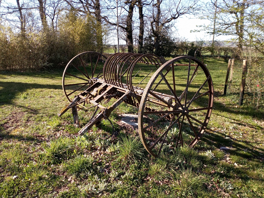 Tout est parti de cet engin agraire que je trouve très moche et qui me gêne pour tondre. On a essayé de le vendre, puis de le donner sur LBC, comme personne n'en veut je m'en suis servi pour créer quelque chose d'utile.