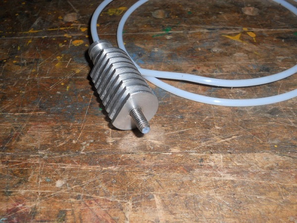 Le radiateur est taillé dans un cylindre d'alu de 26mm de diamètre. La gaine téflon arrive directement contre la buse.
