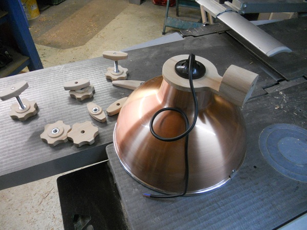Les molettes sont usinée avec une fraise de 6, les logements des écrous sont ensuite terminés au ciseau à bois, usinées avec une fraise Ø6 il aurait fallu changer pour un outil plus petit et relancer un usinage, ça aurait été plus long et de toutes façons il aurait fallu finir les angles au ciseau. La CNC c'est très bien mais si on la laissait tout faire on s'ennuierait vite.