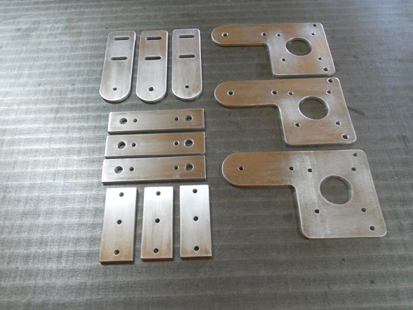 Je ne pouvais pas fixer les tiges de guidage dans le bois, j'ai fais des platines en alu avec des perçage entraxe 50mm. Pour garantir la même précision à tous les supports j'ai fais les perçages à la CNC.