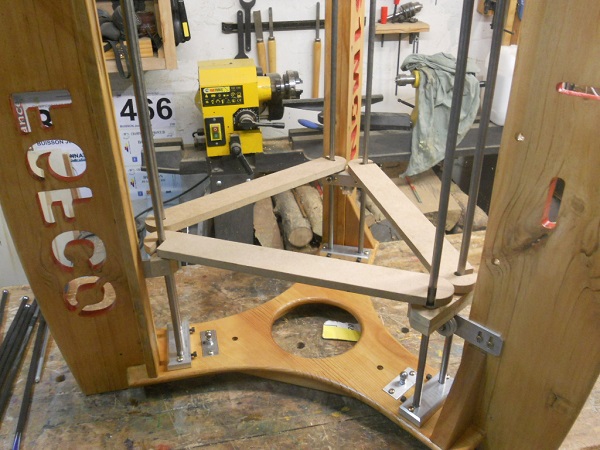 Assemblage à l'aide des écarteurs pour que les tiges soient bien positionnées à 120° les unes par rapport aux autres.