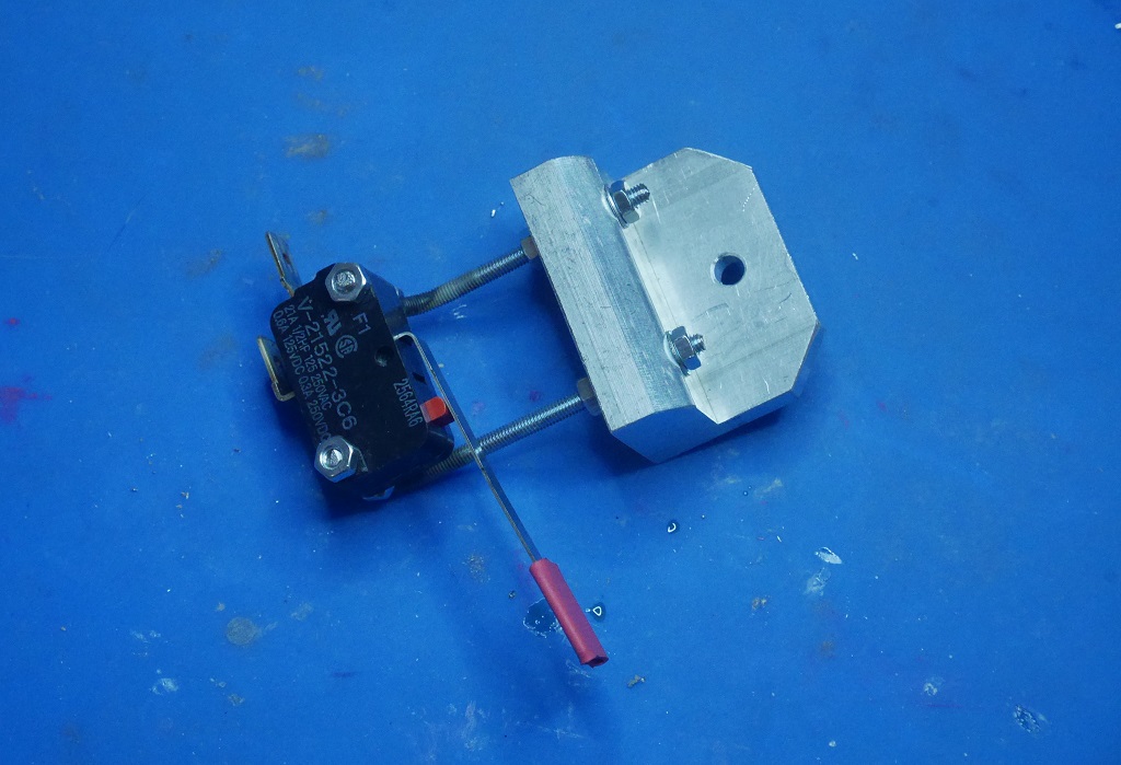 Le système de déclenchement: en arrivée en HOME le chariot presse un microrupteur prélevé dans un vieux four micro-ondes.