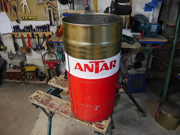Le bidon rouge plus rigide servira de bac récepteur, le haut du bidon doré est découpé pour faire le système Thien.