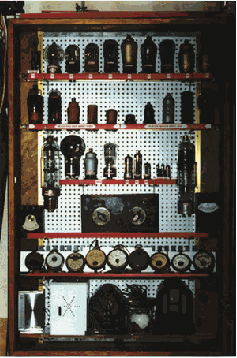 André, F1FWR devant une partie de sa station, le coin de la galène, des bigrilles, des TM et autres A409 ...