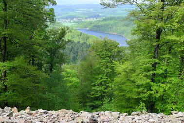 I was very tired by now and having great difficulty breathing, but after scrambling up this section, was rewarded by a panoramic view over Nonnweiler and its reservoir.