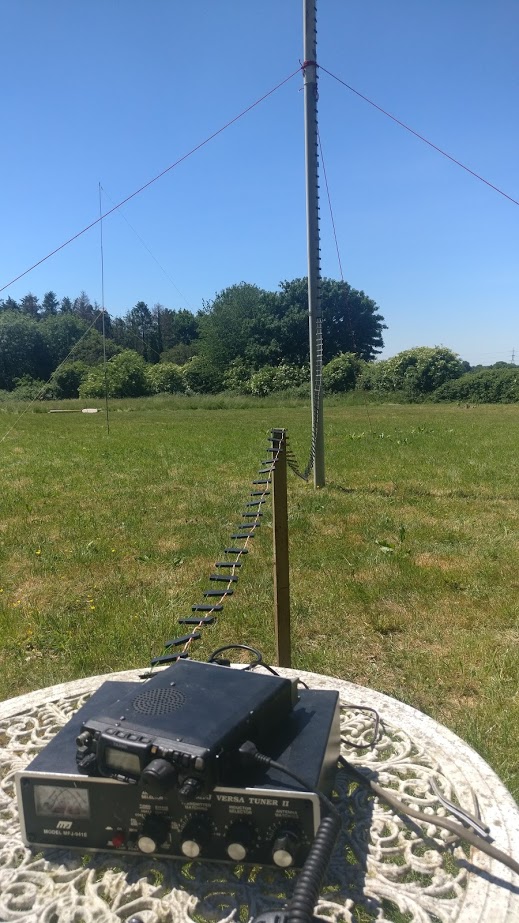 Wire antennas are not easy to photograph, so in the photo below I have marked where the aerial wire runs.I made about 6 contacts into Italy and Spain during one sporadic E session, on one occasion getting an S9 +10db report from a Spanish station with my 5 watts from the FT-817.