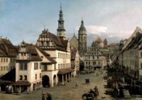 At the bank of the Elbe stood a Schnell Imbiss dispensing beer and Bratwurst, which I was able to enjoy during a pause in the rain showers. Next to the Imbiss was the last of the green Malerweg signs pointing me along the left bank of the Elbe towards Pirna. The trail now along was the Elbe Radweg, a 3Km walk along the cycle way to Pirna. My Wanderführer warned that the cycle way would probably be busy with cyclists on weekends. What it failed to mention was that the causeway was also used by fast cars and vans. So the long tramp to the trail end was dangerous as well as uninspiring. It started to rain heavily as I reached the edge of the town. After a few minutes limping through the cobbled streets of the Altstadt, I reached the Caneletto House in the market place. This completed my walk of the Malerweg. After lunch in Pirna, I caught one of the vintage paddle steamers which took me downstream to Dresden to end my holiday in style.
