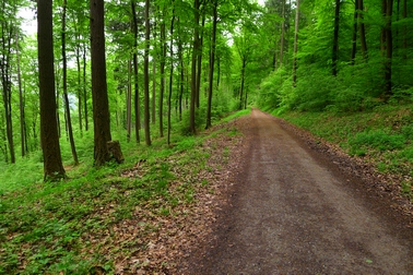Just before reaching the top, disaster struck when I stepped onto a large flat rock. Suddenly and without warning, both feet slipped back and I fell face first onto the rock. I had no time to break my fall with my hands and my face took the full force of the fall. Luckily my head narrowly missed a jagged rock as I fell. I think I was unconscious for a short time and just laid in pain on the rock in the running water for quite a while whilst using my tongue to examine if I still had all my teeth. My right leg was badly cut and grazed. I had no mirror to examine my face, but later found my jaw was heavily bruised and my lower lip was quite swollen. I felt quite shaken by this accident, but luckily no serious damage was done. After applying some first aid and a couple of medicinal shots of Obstler, I carried on to the top of the ravine. When I reached the top, there were no signs whatsoever. I had the choice of going left or right. It was just as well that I had brought a detailed map with me today. After some studying, calculation and guesswork, I decided to go left and make my way towards Lindach. I spent the next few miles on more forestry roads, using map & GPS to navigate. The forest was deserted and I stopped at a pile of logs and made lunch. Following the paths downhill, I eventually reached the village of Lindach and found the bahnhof. My luck with synchronizing my walks with train times had still deserted me as I arrived on a platform just in time to watch the hourly train to Mosbach arrive and depart from the opposite platform. Lindach has no shops, bars, restaurants, night clubs or museums. It does have a fire station and a very old rathaus though. After thoroughly exploring the village in less than 10 minutes, I was glad I'd packed my iPod and sat on the station bench listening to Schumann until the next train eventually arrived. The Frühlingsfest was still in full swing when i got back to Mosbach. I was now finding the fair very tedious and avoided the centre, eating at the Greek restaurant under the hotel instead. My bruised and battered face attracted some odd looks from fellow diners.