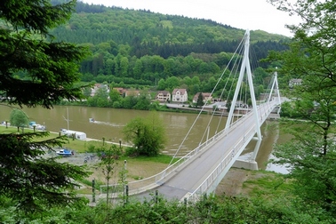 The castle ruins are very impressive. There was nobody else about, so I was able to appreciate it all in silence. There were good views of the Neckar from here. I rejoined the official Neckarsteig trail, which proceeded pleasantly along the Brunnenweg, a flat forest road, towards Neunkirchen. After a few kilometres, I reached the Kellersbrunnen Hütte and turned right to make my way towards Zwingenberg. There were no signs on this path, which followed the perimeter of the protected Zwerrenberg Nature Reserve, so I had to rely on my own navigation. After a few more kilometres along this trail, it appeared it would lead further west of my objective than necessary, so I decided to bushwhack my way down through the forest to get to Zwingenberg. Although the descent was very steep, it wasn't difficult progress and most of the hillside was covered in moss and ferns which was a fine sight. I crossed two more forestry roads during my descent and was amazed at my previously unrevealed navigational skills when I arrived exactly opposite and above the new bridge at Zwingenberg. With a little dexterity, I was able to make it onto the bridge and crossed over to the town.