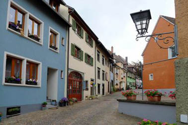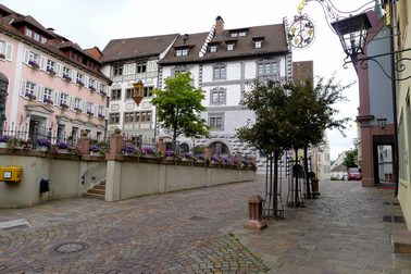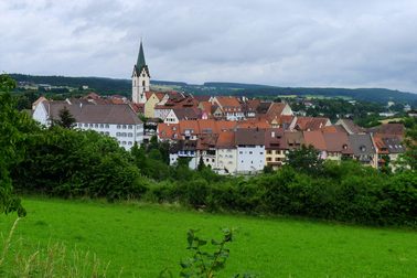 Whilst pondering the mystery of the phantom joggers, I carried on along the trail until reaching Napoleonseck, a command post of French troops under Napoleon at the Battle of Engen in 1800. From here, the trail began an easy descent to Engen. No doubt I was now walking in the footsteps of Napoleon's Old Guard, which was an impressive thought. The clouds were slowly starting to lift and break up as I entered open countryside at Ballenberg and now I could see more of the Hegau. After exiting the last of the trees, I caught my first view of Engen (as well as two people with a dog) and hurried downhill to the town. The historic Old Town of Engen is considered one of the best preserved medieval cities in southern Germany. The height of the houses, whose external walls formed part of the fortifications is very impressive and the old town is well-preserved. After walking the streets of the Altstadt, I stopped for coffee and cake in a nice cafe in the Marktplatz. Finding my way out of Engen around 2PM, I continued on to Anselfingen then along the Burgenweg to the Hohenhewen. Due to the limited visibility, I did not go up to the summit, but instead followed the steep downhill path to Welschingen, where I ended this stage of the Querweg. Welschingen Bahnhof is a long way out from the village so I will not come back this way tomorrow. I caught a train from Welschingen-Neuhaus to the next stop, Mühlhausen-Ehingen where I had made a overnight reservation at Gasthaus Löwen