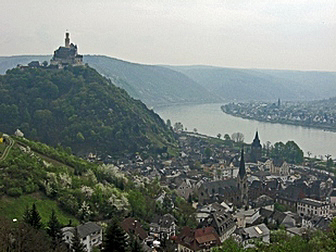 Fleeing from suburbia again. I was confronted with two debilitating ups and downs. Eventually, after reaching the top of the second big hill, I was rewarded with a fantastic view. A few hundred feet below and in front of me was the Rhein, snaking it's way between its steep banks. On a big hill to my left was Marksburg castle, which dominated the town of Braubach below. I was also surrounded by vineyards, the first ones seen since Leutesdorf.
