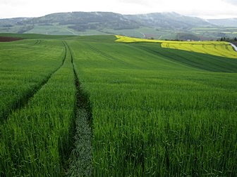 After crossing a bridge over the Wutach, the trail ascended steeply over rough rocky ground to start the section known as the Wutachflühen, a narrow tortuous path along the cliff face of the high gorge through which the Wutach flowed. The scenery along the trail was really enjoyable, with many plants in bloom. many of the rocks and fallen trees covered in bright green moss and occasional interesting fungus growths on trees. The scenery was complemented by the constant sounds of bird song and of the river raging along its' course far below me. Eventually, I reached a fork in the trail and I was tempted to take the left fork down the gorge to Achdorf, today's final destination. Instead, I continued on the Schluchtensteig, which I now consider to be a mistake. The path soon reached the top of the gorge and I found myself in a large car park at Bühl. From here, I tramped along some tarmac roads, then along the edges of farm fields with views across to more farmed land. It was also exposed here, so I no longer had any protection from the rain and wind. Walking on, I reached the protection of another wood which brought me up to a lookout point at Buchberg, but there was little to enjoy from here with the current weather.