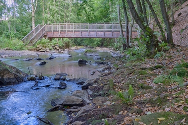Behind the settlement, the trail headed steeply down into the valley and crossed over the Hahnenbach.