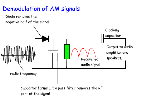 4o.1 Understand the operation of AM, CW, SSB and FM demodulators AM demodulation The audio alters the amplitude of the radio wave.