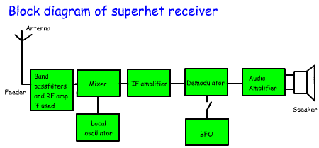 amplifier, demodulator (detector), and audio amplifier. Intermediate frequency