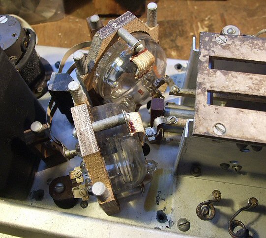 The chassis of the set is removed from case, coils and cystals fitted and the chassis inserted into the square metal tube, attached to