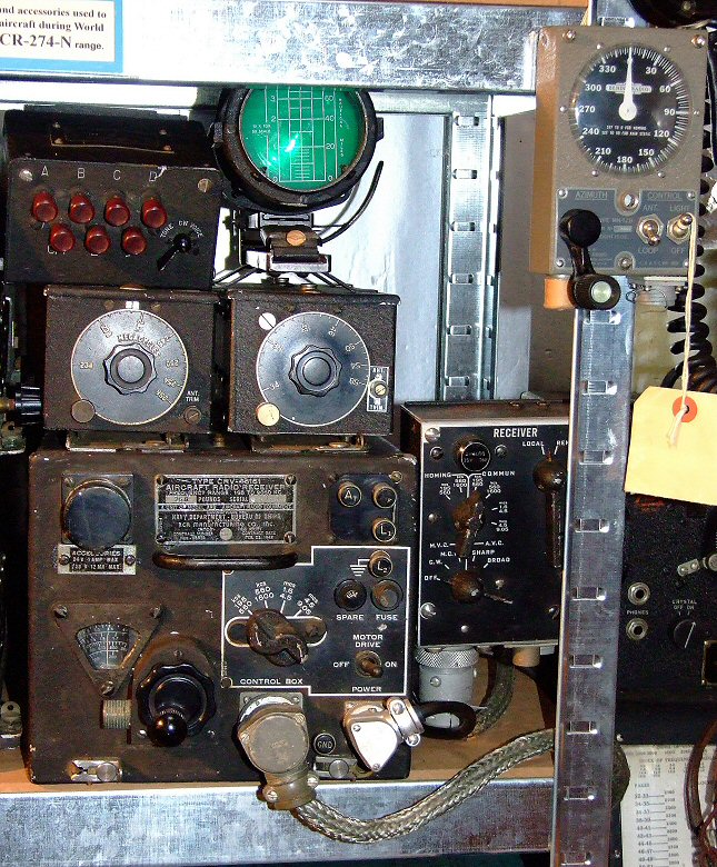 6 to 9Mhz Command receivers modified in the UK by Americans and used for 28-41 Mhz Standard Beam Approach (SBA), designated Type R.1598 with an Air Ministry stores number on the side. The museum has 3 sets, one with the R1598 number hand written where the id plate went. The other 2 have had the plate stamped with "MOD C.B.A." on them.