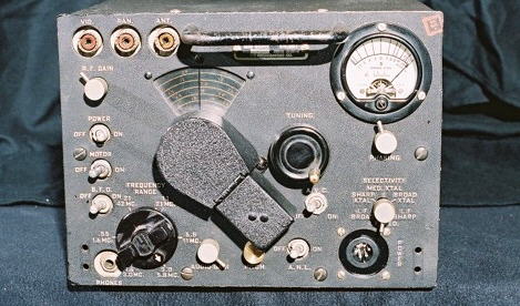 The good old HRO receiver, many a shortwave listeners first set. Used throughout the war, and long after. Many variations made but all had the same unique dial and detachable coil pack. Here an HRO and the US Navy RBJ sets