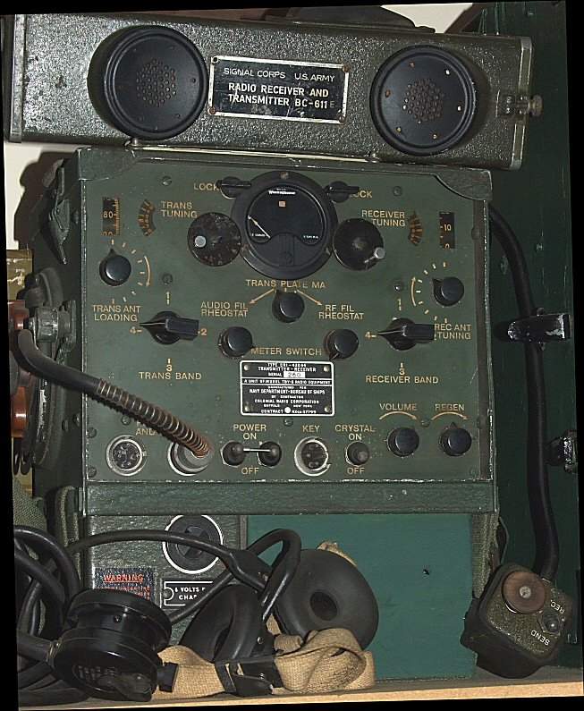RIGHT: The often quoted "first ever walkie talkie" the BC-611 HF portable set.