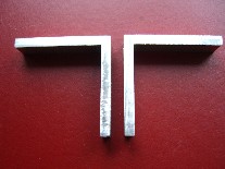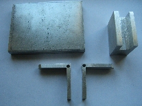 I have started the initial stage of collecting materials for the twin paddle key and cut out the basic shape for the 90 degree paddle arms from 2 x 2 x 3/16 aluminium angle stock, and while the actual grade is unknown is is quite a hard and nice to machine, these are at present 2 inches long each side by 0.5 inch deep.
