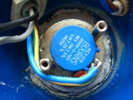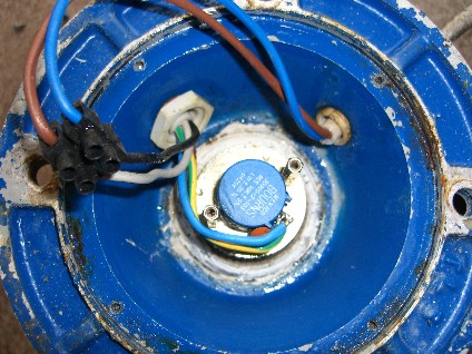 On investigation both the +12 and the -12 volts regulators had failed, these + and - 12 volts are fed up to the 10K potentiometer in the rotator unit itself. The fault was caused by a capacitor that had gone short circuit. There are two disc capacitors that are just visible in the photo's below.