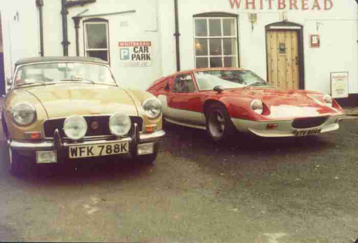 My old MGB Roadster, together with a friend's Lotus 47 Replica outside a pub near Stratford on Avon circa 1982.