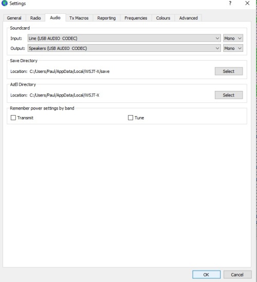 AUDIO Input: Line (USB AUDIO CODEC) Speaker (USB AUDIO CODEC)