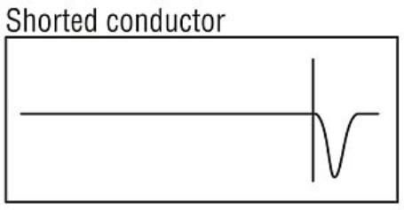 | Alternatively If the end of the cable under test instead of being terminated by a load is shorted then the pulse will be reflected back along the cable, and can be observed on the oscilloscope trace a short period of time after the outgoing pulse as a second negative going pulse. |