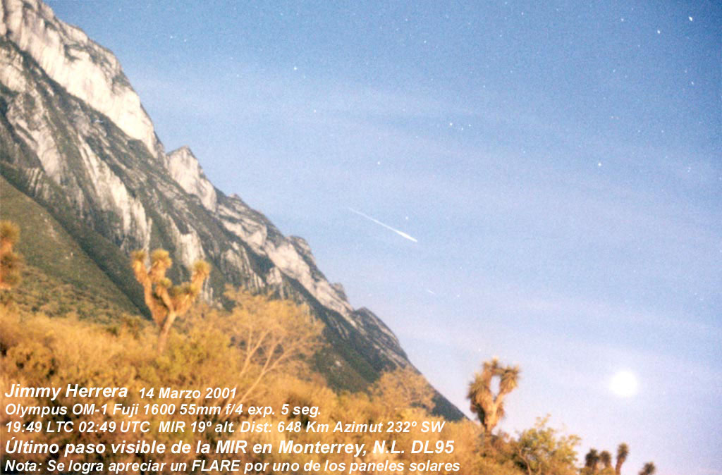 FOTOGRAFÍAS MUY INTERESANTES DEL ÚLTIMO PASO DE LA ESTACIÓN MIR SOBRE LA CIUDAD DE MONTERREY, N.L. CAPTADAS POR JIMMY HERRERA XE2MZS